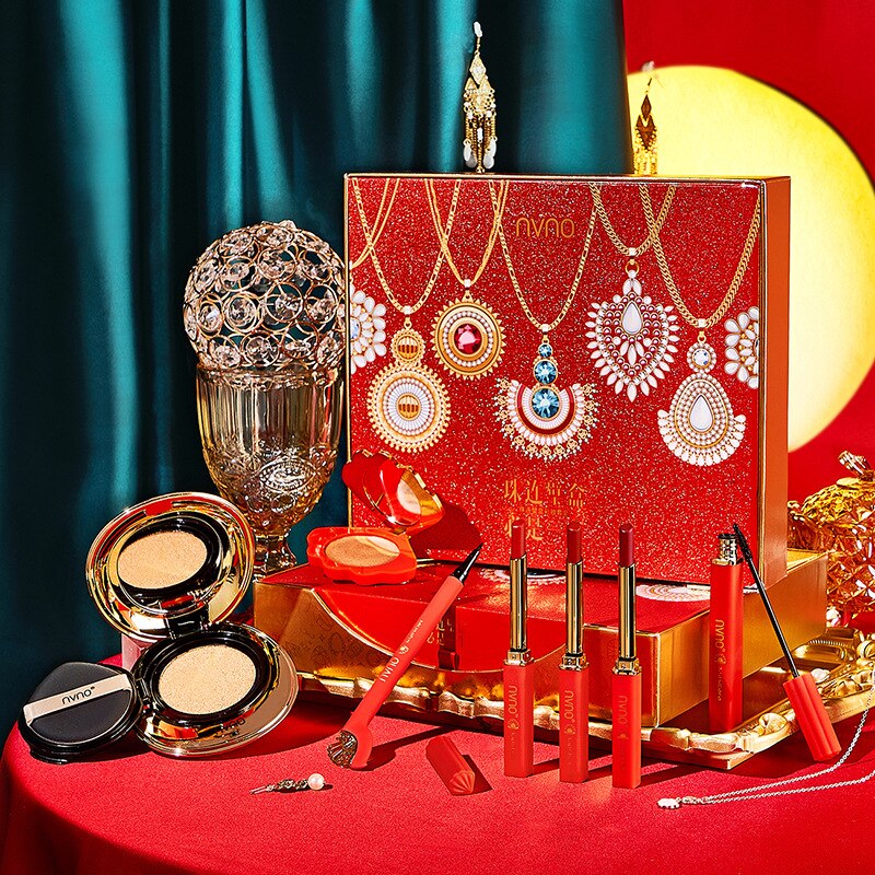 Color Makeup Set 8-piece Cosmetics Set Beauty Makeup Gift Box Valentine's Day Chinese Red Gift Set Kids Makeup Set for Girls